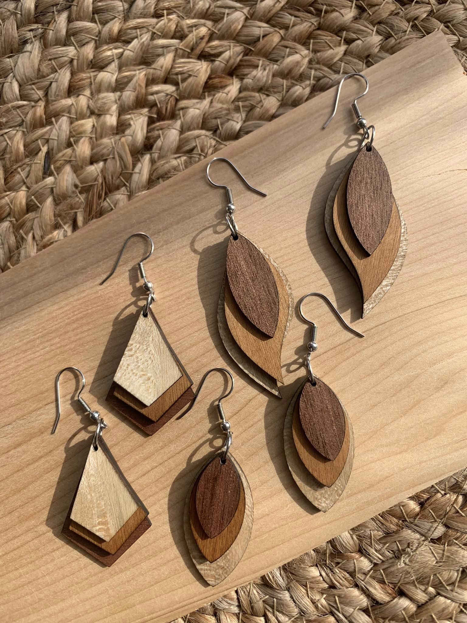 Discover the Beauty of Native and Exotic Woods with our Stunning Earring Collection.