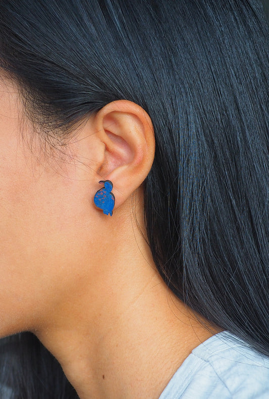 Blue Duck (Whio) Wooden Rimu Stud Earrings