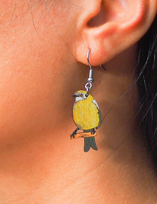 Bellbird (Korimako) Wooden Rimu Stud Earrings