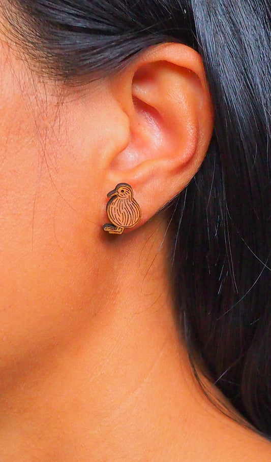Sold outKiwi Wooden Rimu Stud Earrings #2