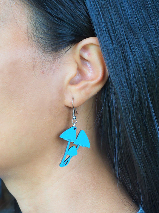 Blue Mushroom (Werewere-kokako) Wooden Rimu Earrings