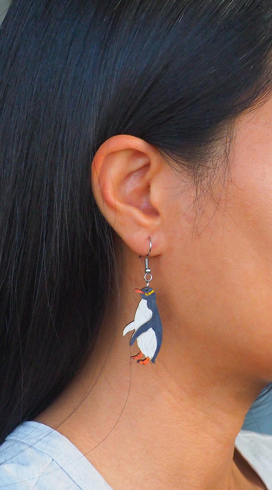 Yellow eyed penguin (Hoiho) Wooden Rimu Earrings
