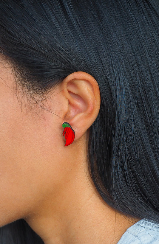 Fantail (Pīwakawaka) Wooden Rimu Stud Earrings