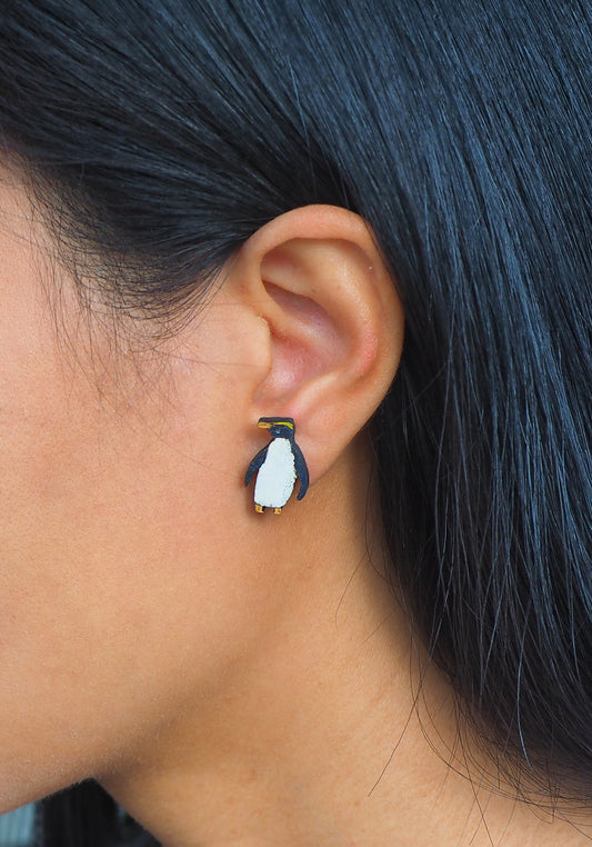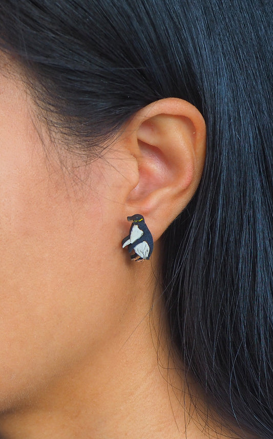 Fiordland penguin (Tawaki) Wooden Rimu Stud Earrings
