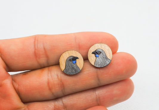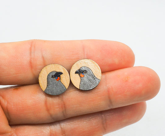 Blue Duck (Whio) Wooden Rimu Stud Earrings