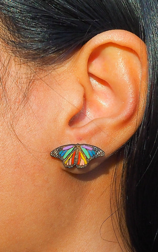 Rainbow Butterfly Wooden Rimu Stud Earrings