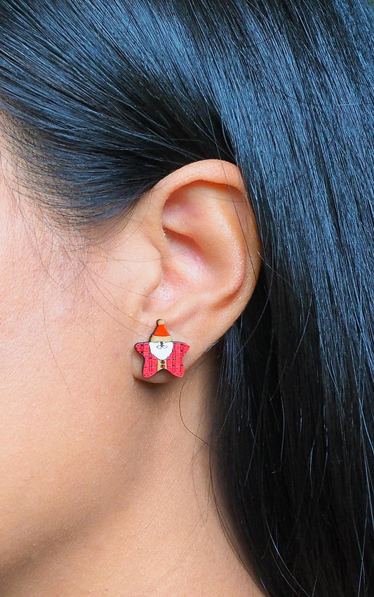 Santa claus Wooden Rimu Stud Earrings