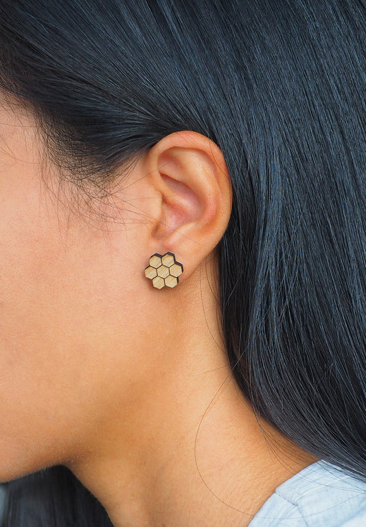Honeycomb Wooden Rimu Stud Earrings