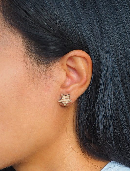 Rewarewa Star Wooden Stud Earrings