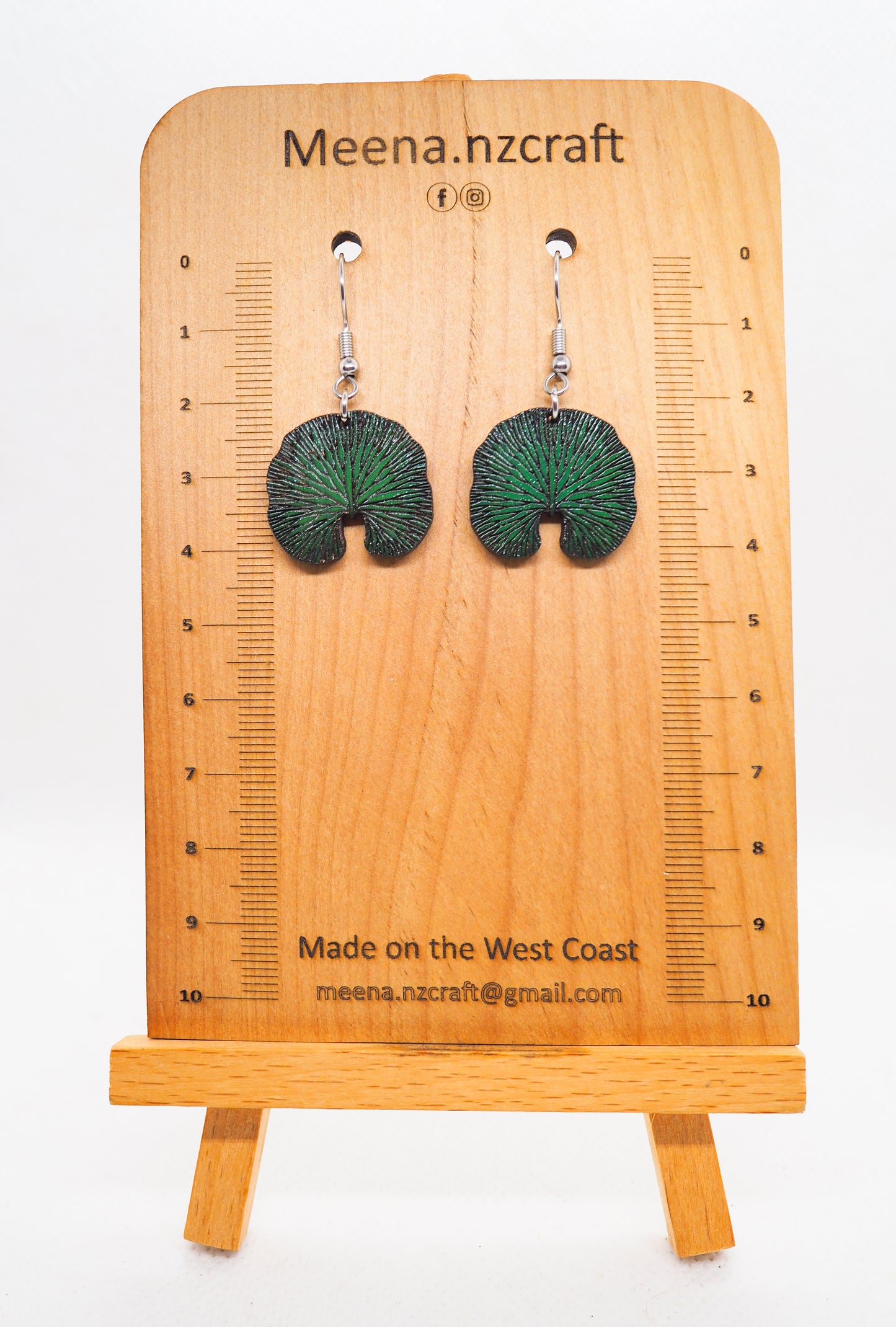 Inspired by the Kidney Fern (Microsorum pustulatum), a native New Zealand fern known for its distinctive, kidney-shaped leaves, these earrings capture the beauty of New Zealand's lush forests. The kidney fern thrives in moist, shaded environments like forests and stream banks, with a creeping rhizome that allows it to spread across the ground or attach to trees and rocks.