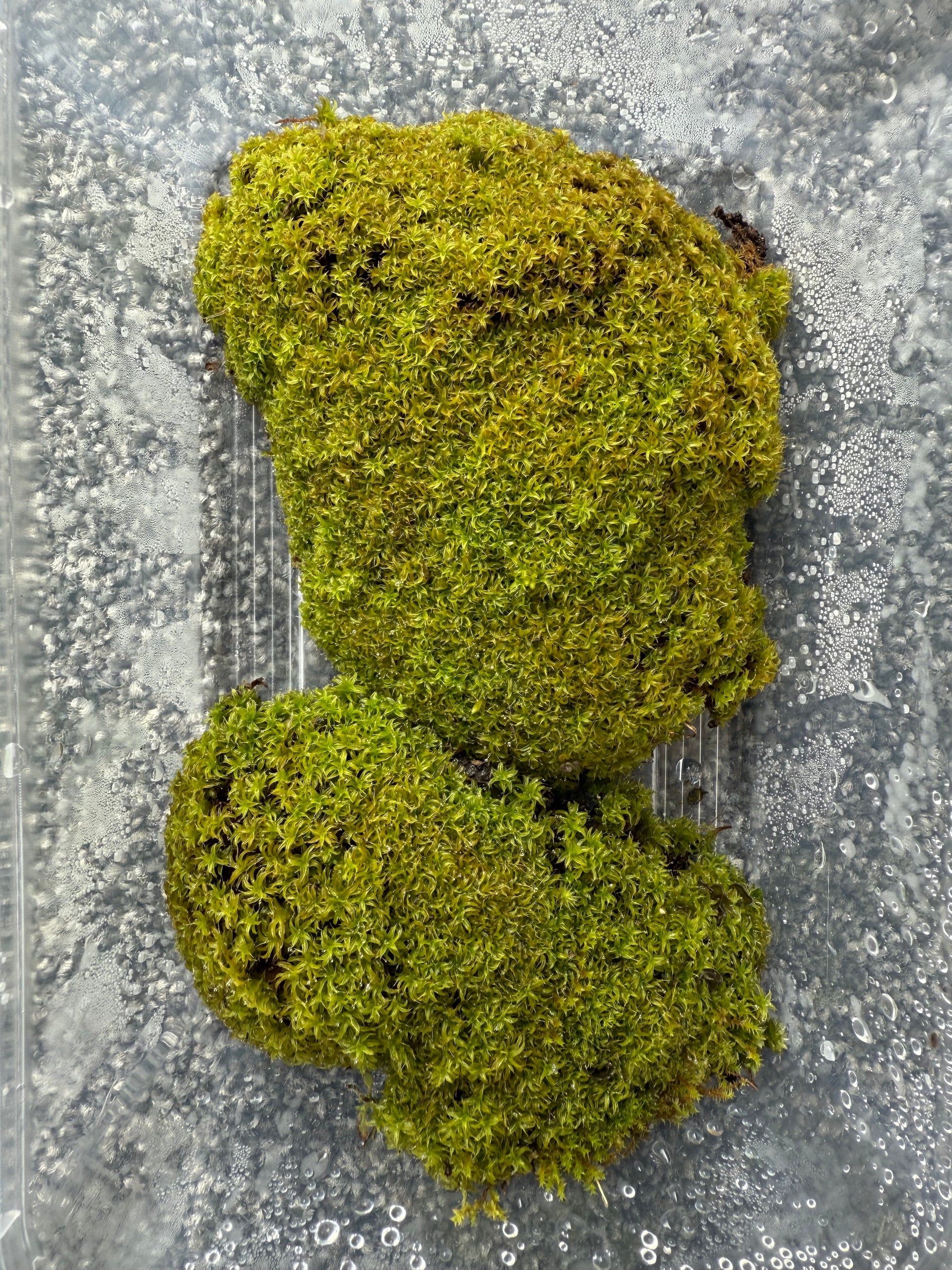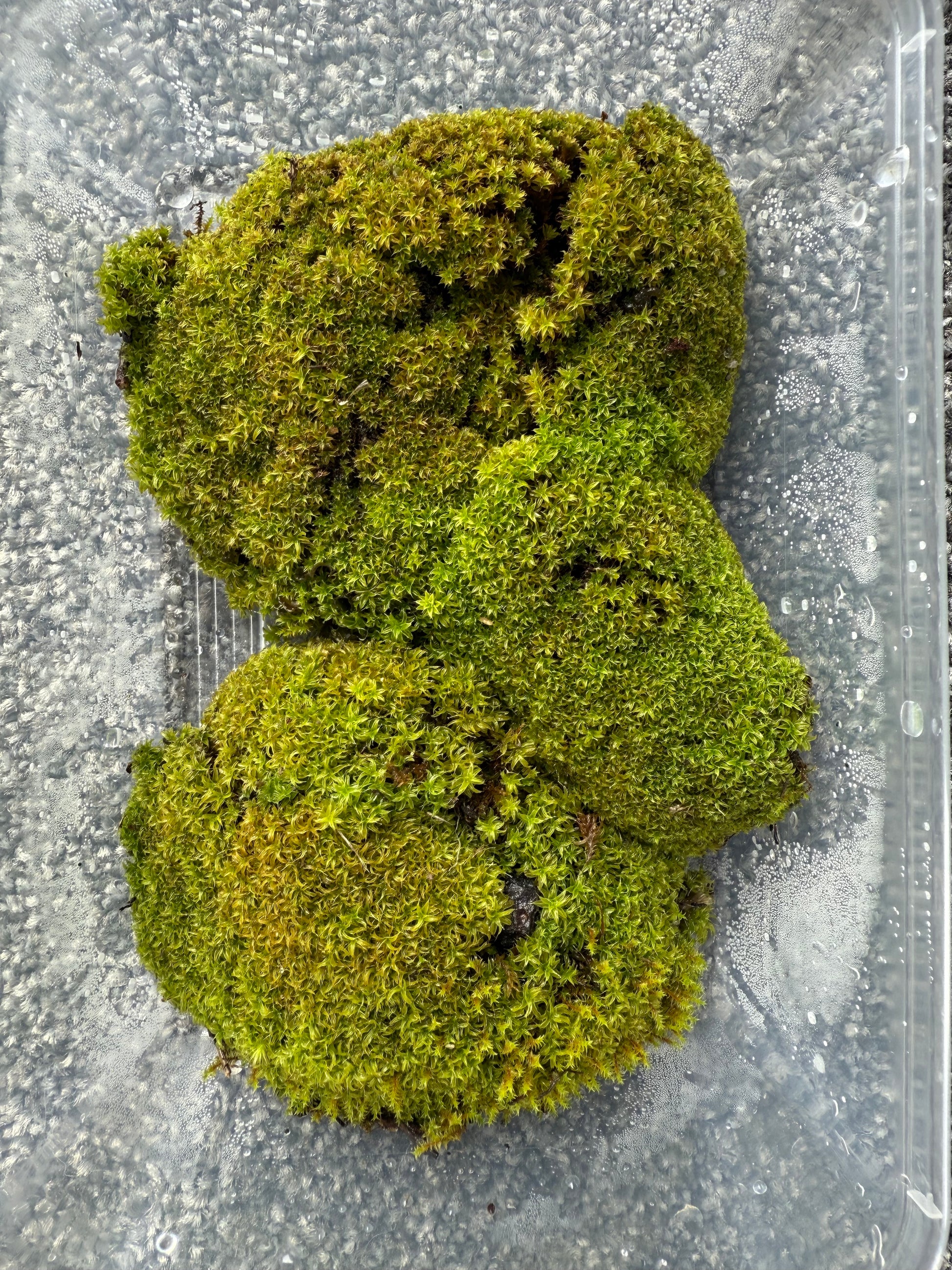To store moss: Use a clear-lidded container with a bottom layer of damp sphagnum moss moistened with dechlorinated or rainwater. Arrange the moss evenly on top, spritzing as needed to maintain moisture. Keep the container in bright, indirect sunlight, opening the lid occasionally for ventilation and misting if it starts to dry out.